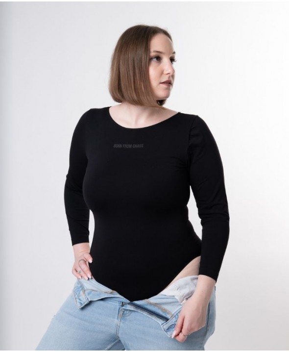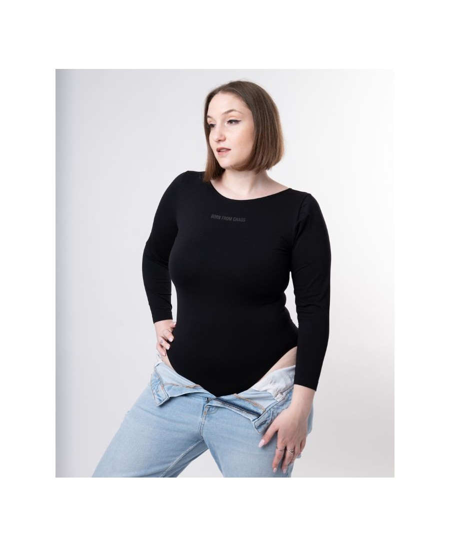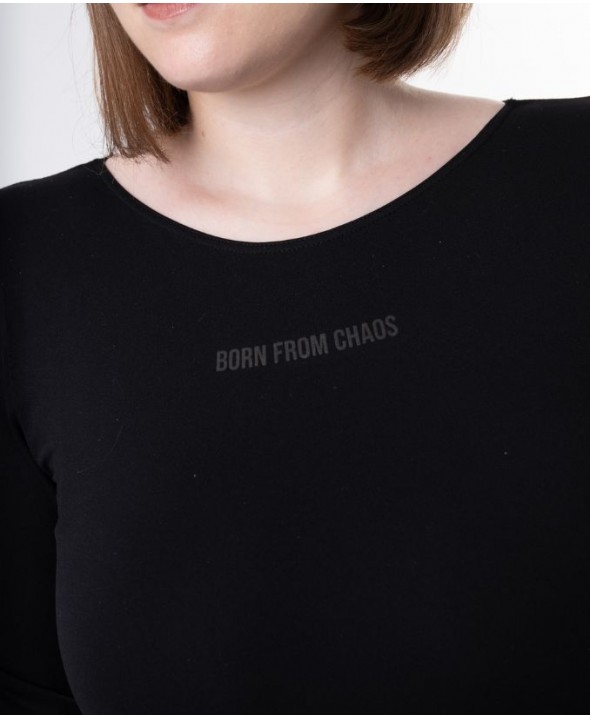 Long Sleeve Bodysuit Seamless "Born From Chaos" - Black